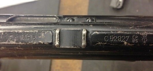 EN MP5, 1985, C 52266, (aus Reddit MP5 Blog), Präfix "C" mit 5-stelliger Seriennummer plus englischen Beschusszeichen.
