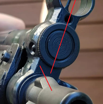Der Nocken links steht auf 3 Uhr (in Schussrichtung gesehen).