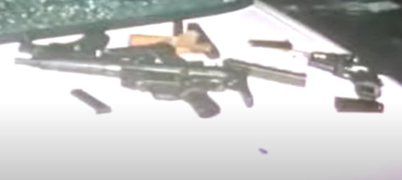 Polizeifotos von zwei RAF-Tatwaffen. Ganz rechts die Pistole HK4, mit der eines der führenden RAF Mitgliedern im Gefängnis Stuttgart Stammheim Selbstmord beging. Die HK4 wurde in Prozessakten versteckt in das Gefängnis geschmuggelt. Damit die Pistole flacher und damit leichter zu verbergen war, hat man die Griffschalen abgenommen.
