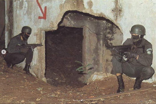 Dieses Bild zeigt schön die MP5 der GSG 9, sieht aber ansonsten sehr eigenartig, gestellt und irgendwie unecht aus. War das allenfalls ein filmischer Einsatz mit Schauspielern? Was ist Ihre Meinung?