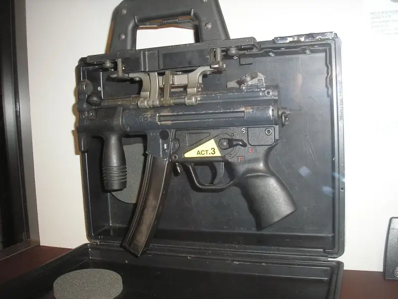 Die abgebildete MP5K ist ebenso wie die Standard-MP5 mit gelben Stickern und einem Datachip ausgestattet. Daher kann man davon ausgehen, dass diese MP5K aus den Beständen der Marechaussee stammt.