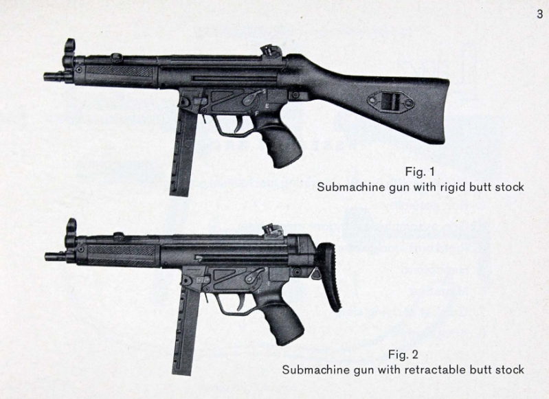Die unten gezeigte Kurzbeschreibung stammt aus dem Jahr 1973, also sieben Jahre nach der Einführung der MP5. Dennoch wurde für die Abbildungen auf Seite 3 dieselbe Druckvorlage der HK 54 / MP5 wie in der Ausgabe von 1967 verwendet.