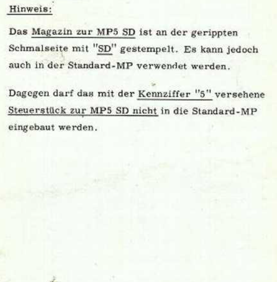 Die wohl erste Informationsbroschüre zu MP5 SD von 1974 beschreibt auch die Verwendung der mit "SD" gekennzeichneten Magazine.